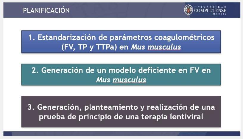El siguiente objetivo fue desarrollar un modelo viable de ratón deficiente en factor V mediante CRISPR/Cas9, que sería muy útil para estudiar tratamientos para el déficit de factor V. Se realizó un estudio in silico para seleccionar una mutación que causara un fenotipo leve equivalente en humanos (Thr1898Met), replicándola en ratones (Thr1857Met) mediante CRISPR (edición génica).